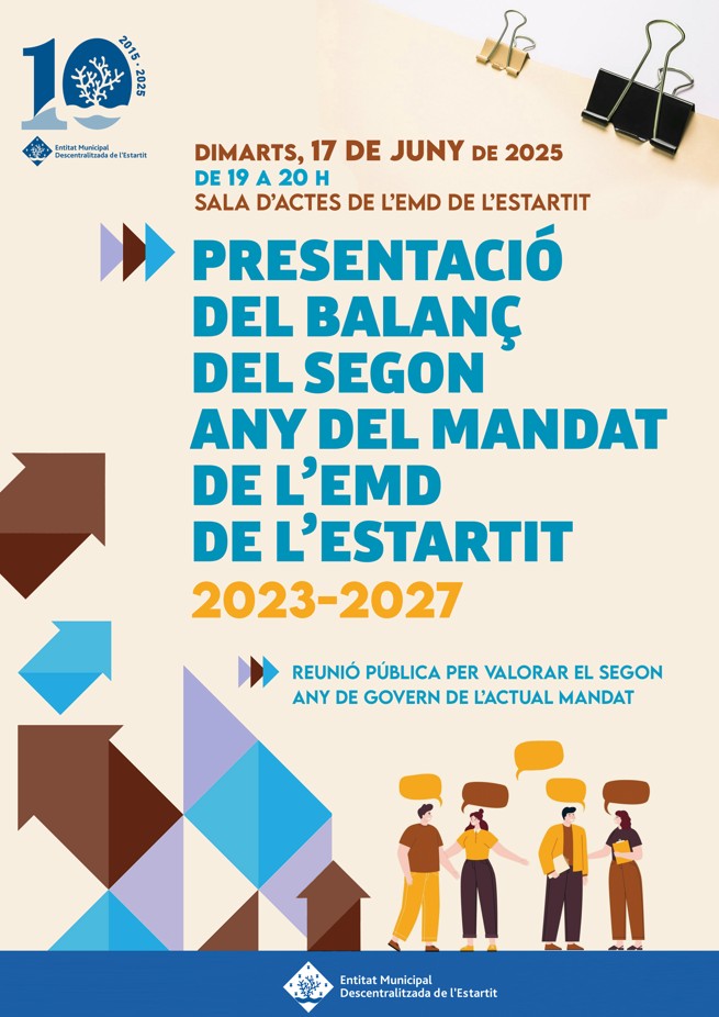 Agenda de l'Estartit Balanç del segon any del mandat de l’EMD de l’Estartit 17/06/2025 - 17/06/2025 < Entrada AnteriorEntrada Posterior >