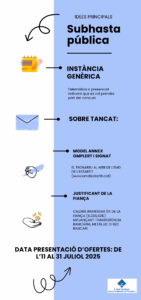 Les persones interessades caldrà que revisin el Plec de Condicions per tal de poder concursar i tenir en compte les dates per tal de presentar candidatura, que seran de l’11 al 31 de juliol de 2025, ambdós inclosos.