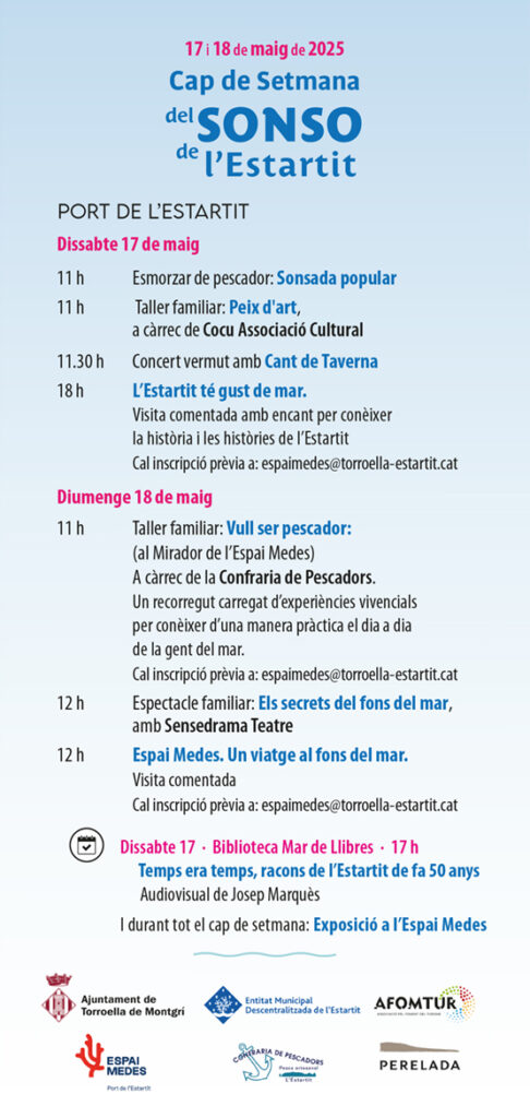 En el marc de les jornades, els dies 17 i 18 de maig se celebrarà el Cap de Setmana del Sonso al Port de l’Estartit, amb un ampli ventall d’activitats culturals, lúdiques i gastronòmiques pensades per a tots els públics.